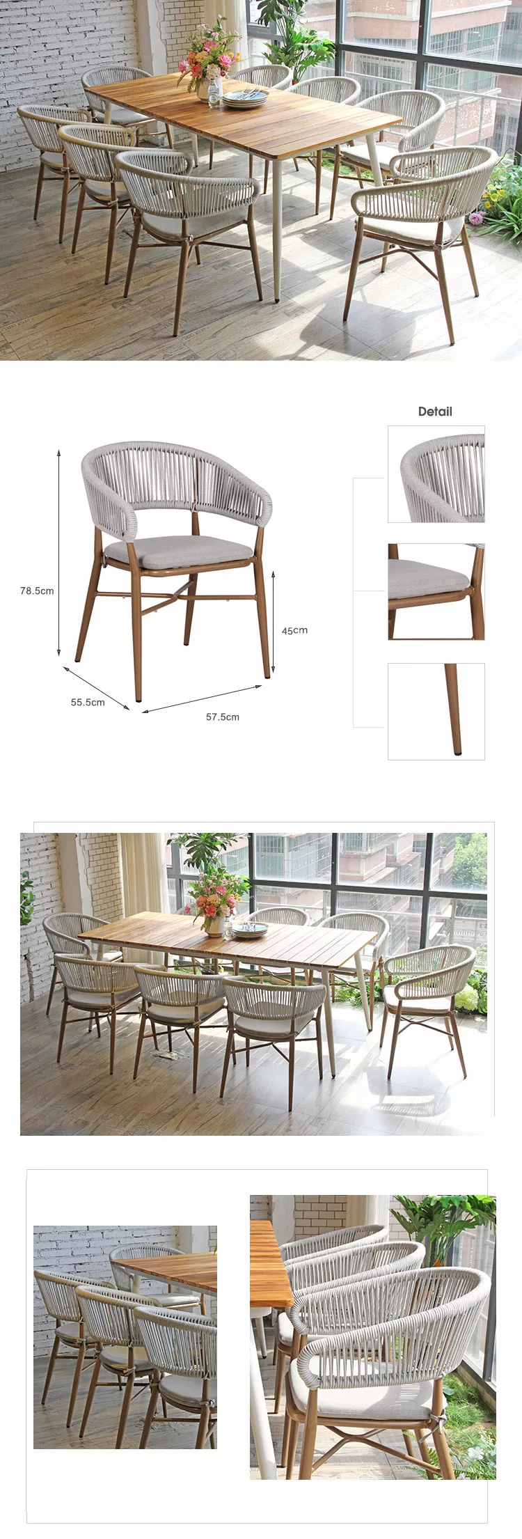 Stylish Braided Rope Outdoor Restaurant Chair With Waterproof Cushion