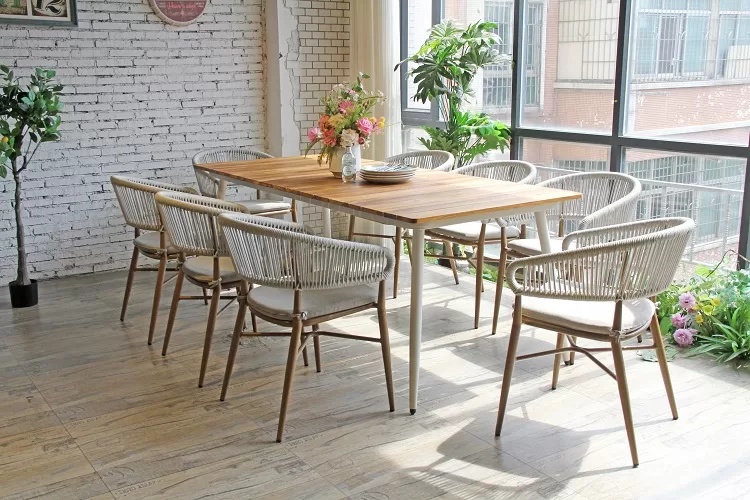 In an industry where first impressions matter, the Stylish Braided Rope Outdoor Restaurant Chair with Waterproof Cushion sets a new standard. It proves that outdoor furniture can be both beautiful and resilient, catering to the needs of modern restaurants and their patrons. Whether your venue is a bustling city cafe or a serene countryside eatery, these chairs invite guests to sit back, relax, and savor the moment—all while adding a touch of refined style to your outdoor space.